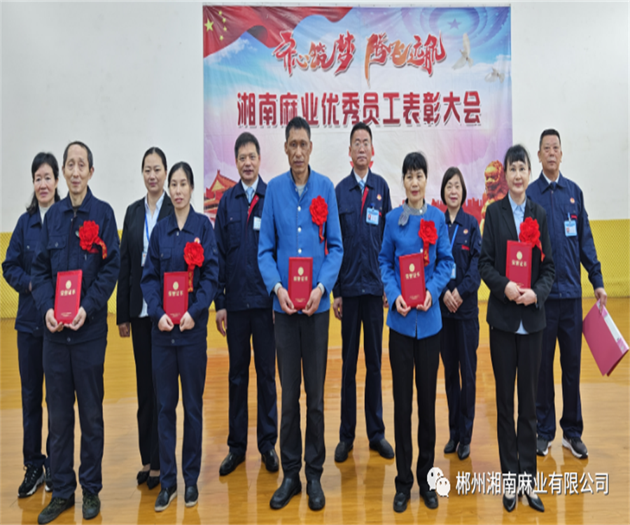 為了營(yíng)造良好的生產(chǎn)工作環(huán)境和學(xué)習(xí)氛圍,進(jìn)一步激發(fā)廣大干部員工向先進(jìn)學(xué)習(xí)的熱情,促進(jìn)公司各項(xiàng)工作再上一個(gè)新臺(tái)階,郴州湘南麻業(yè)有限公司于4月29日上午組織召開2022年度優(yōu)秀員工表彰大會(huì),對(duì)上一年度工作表現(xiàn)優(yōu)異、有突出貢獻(xiàn)的員工予以表彰。